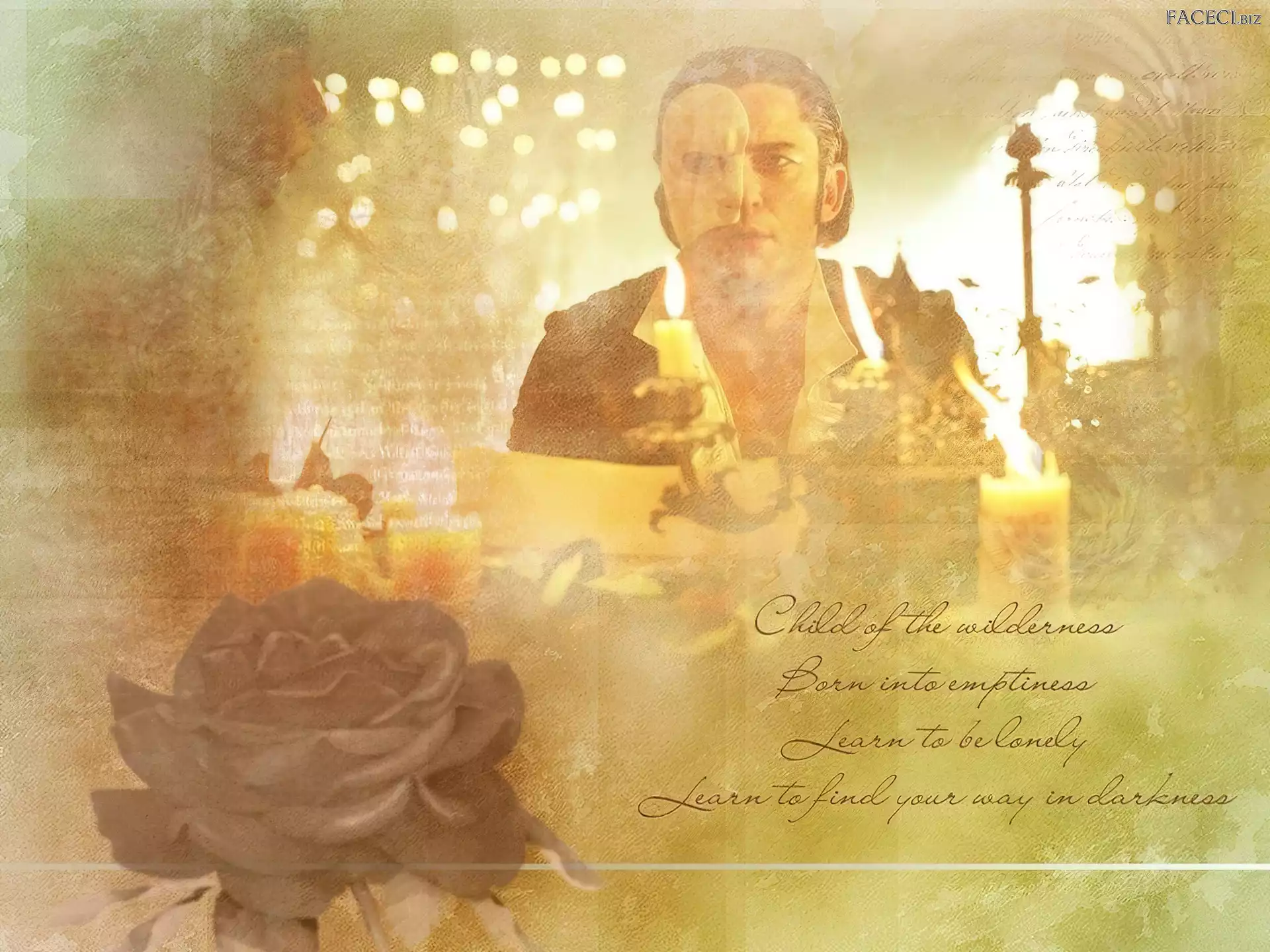 Gerard Butler, róża, Phantom Of The Opera, świece - faceci.biz